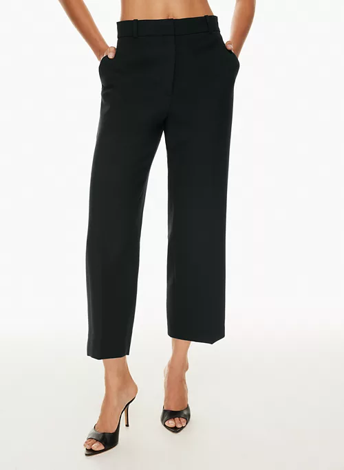 These are high-waisted pants with slash hand pockets, a darted back and a cropped straight leg. They’re cut from (Re)ssential — softly structured stretch fabric that holds its form while you move easy. It’s sourced from a premier Portuguese mill and made with recycled materials and LENZINGâ„¢ ECOVEROâ„¢ Viscose — responsibly sourced, wood-based fibres produced through a process that reduces impact on forests, biodiversity and water supply.Â
