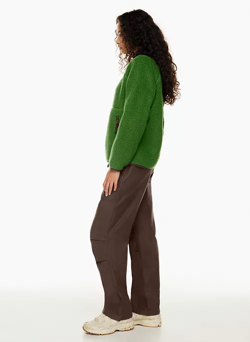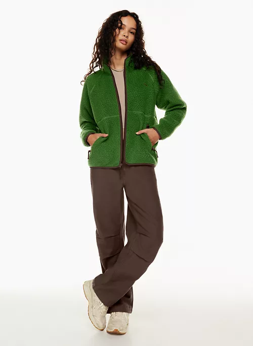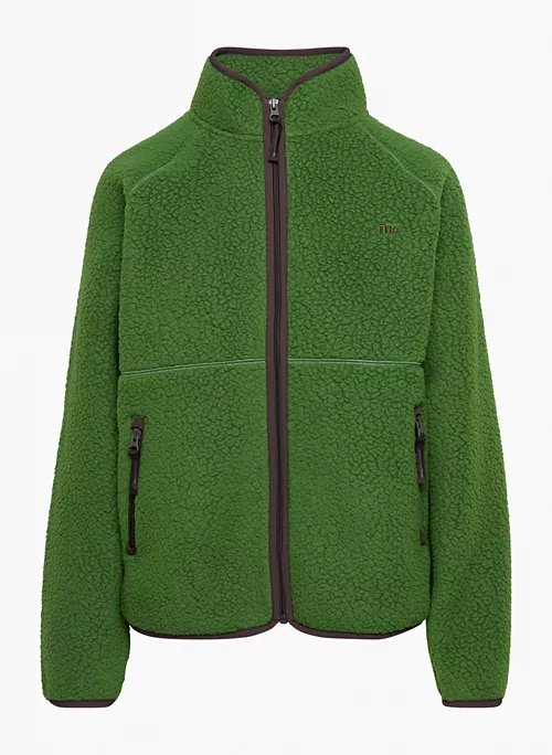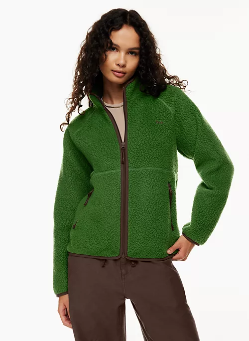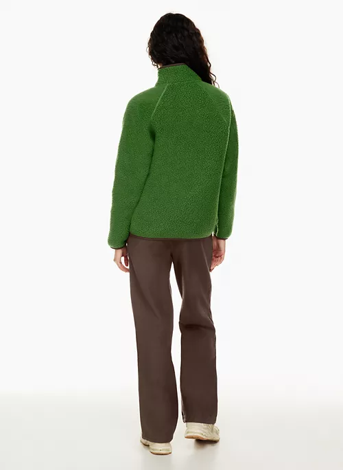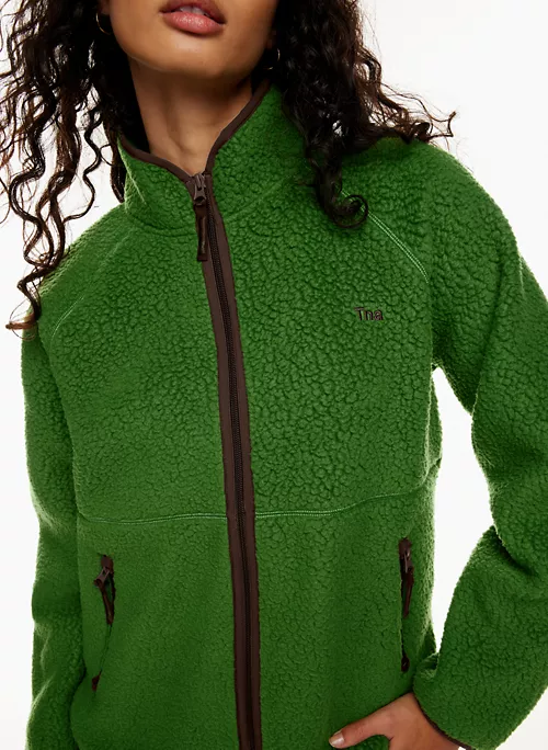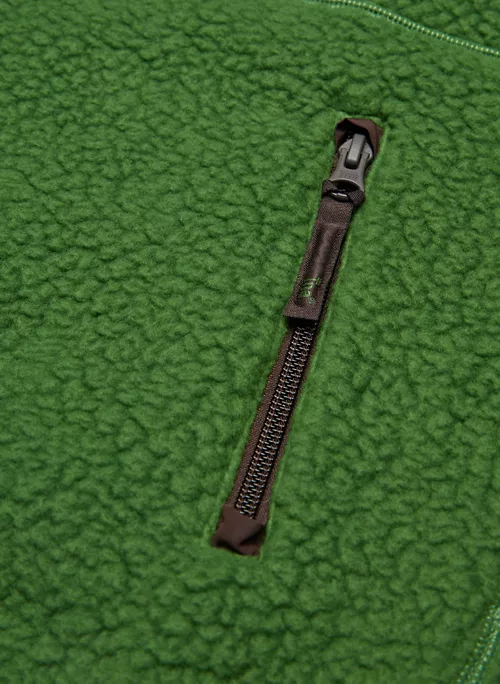 Very. This is a mock-neck zip-up with raglan sleeves, hand pockets and a mesh lining on the lower half. It’s made with Bigfoot Polar — lightweight, 100% recycled fleece made with Polartec© Thermal Pro® that’s breathable and warm with a shaggy sherpa texture.Â