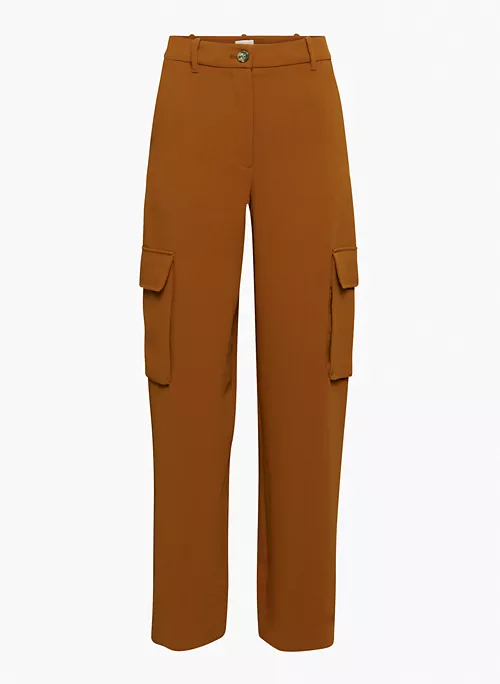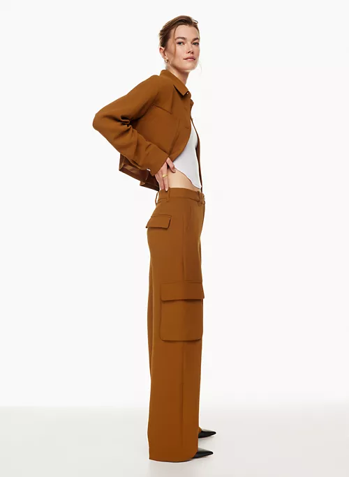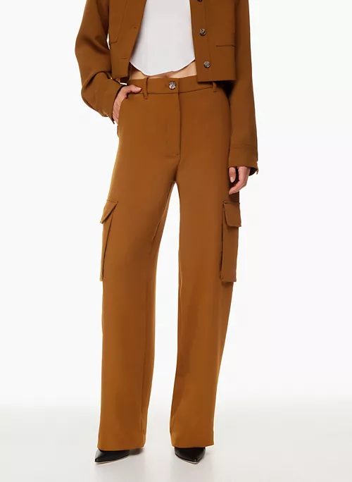 These are high-waisted cargo pants. They’re made from Crepette — Wilfred’s iconic crepe fabric famous for its subtle texture and breezy, effortless drape. It’s sourced from a premier Japanese mill.