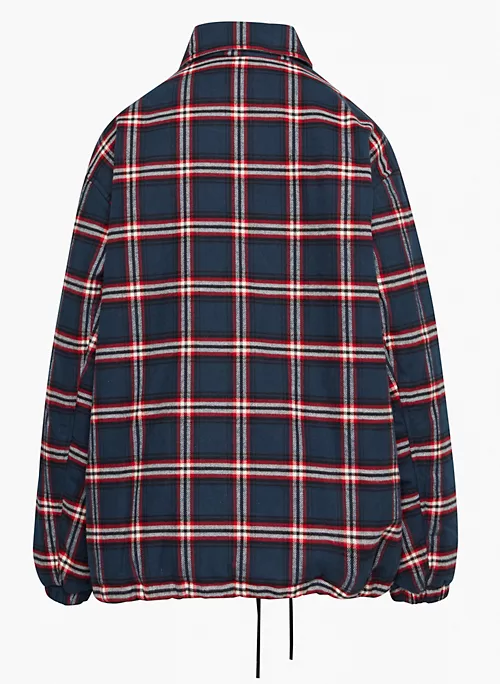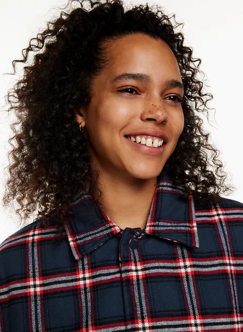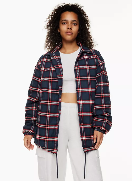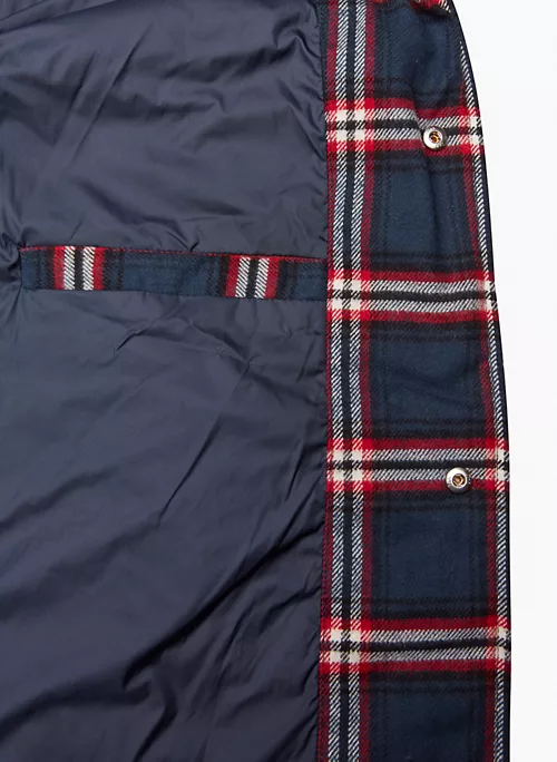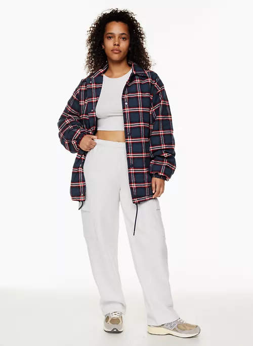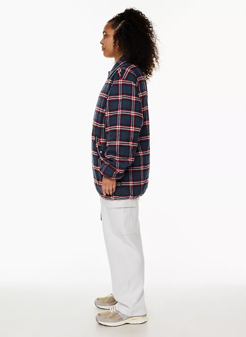 Engineered to deliver warmth to -10°C / 14°F, this is an oversized snap-front jacket with a pointed collar and shockcord hem. It’s filled with vegan down and made with Flannel — cozy, soft brushed fabric made with 100% organic cotton.