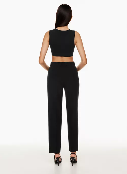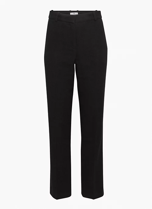 These are mid-rise straight-leg pants with slash hand pockets, back welt pockets and a darted back waist for shaping. They’re cut from ReWool Suiting — 100% recycled wool suiting fabric with a soft, flannel-like feel. It’s sourced from a premium Italian mill