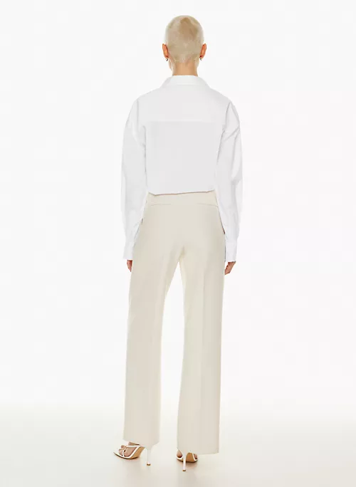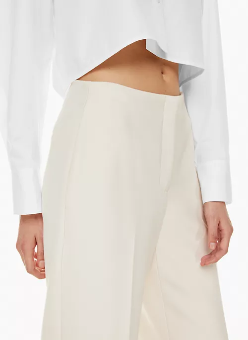These are mid-rise pants with inseam pockets and back welt pockets. They’re cut from (Re)ssential — softly structured stretch fabric that holds its form while you move easy. It’s sourced from a premier Portuguese mill and made with recycled materials and LENZINGâ„¢ ECOVEROâ„¢ Viscose — responsibly sourced, wood-based fibres produced through a process that reduces impact on forests, biodiversity and water supply.
