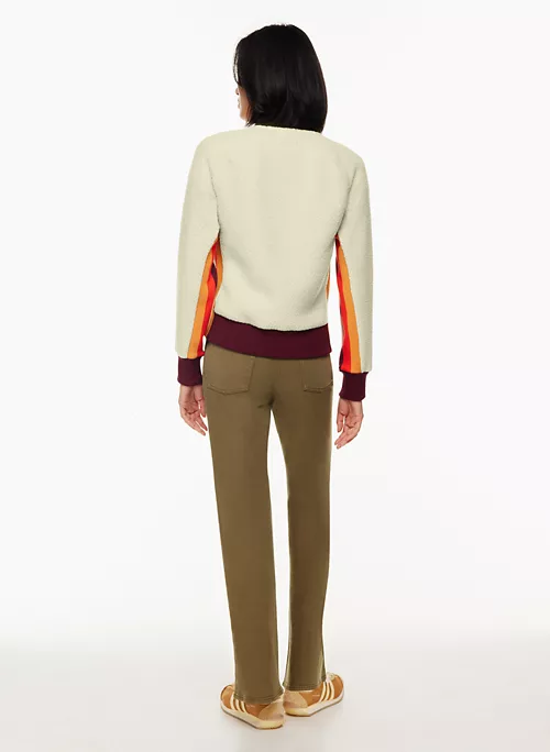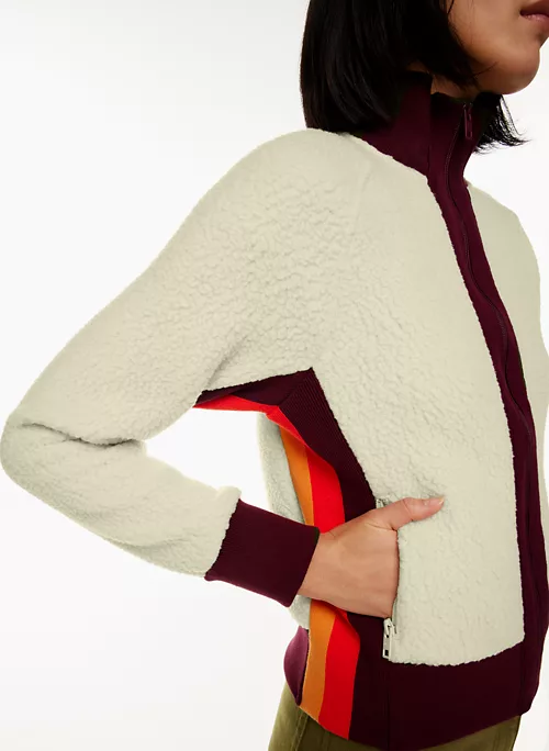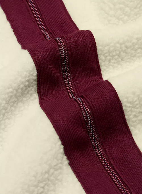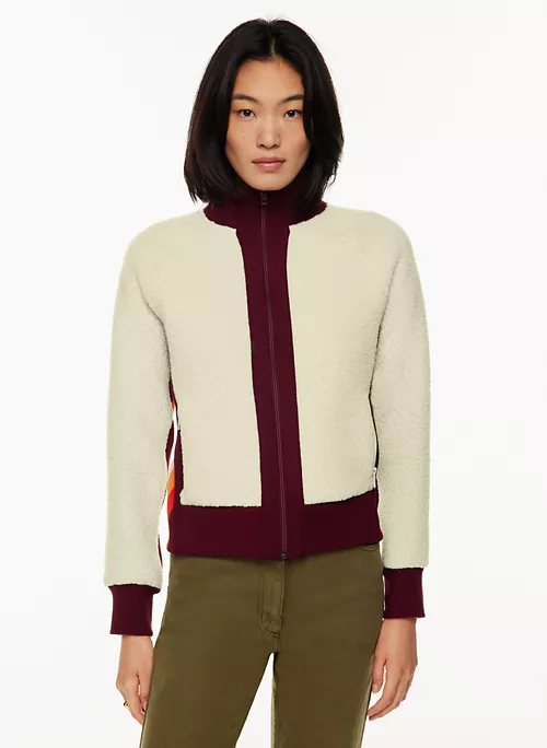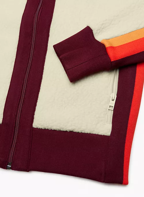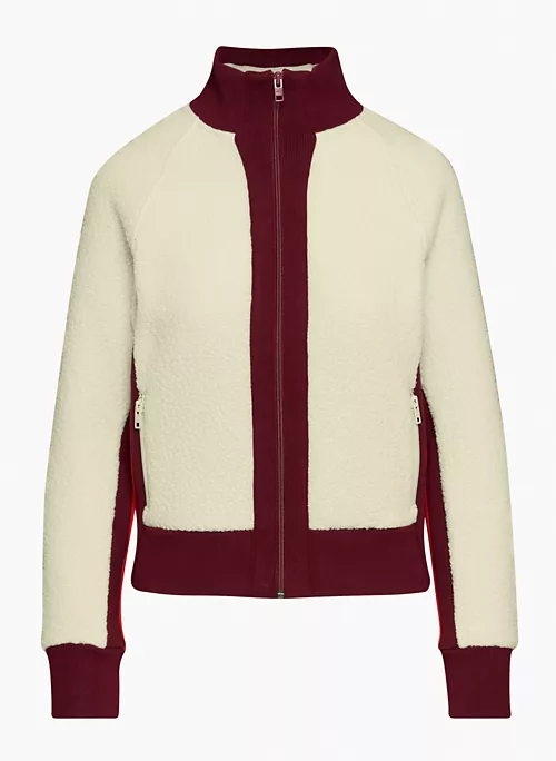 This is a mock-neck zip-up with raglan sleeves and a cozy brushed lining. It’s made with Bigfoot Polar — lightweight, 100% recycled fleece made with Polartec© Thermal Pro® that’s breathable and warm with a shaggy sherpa texture.