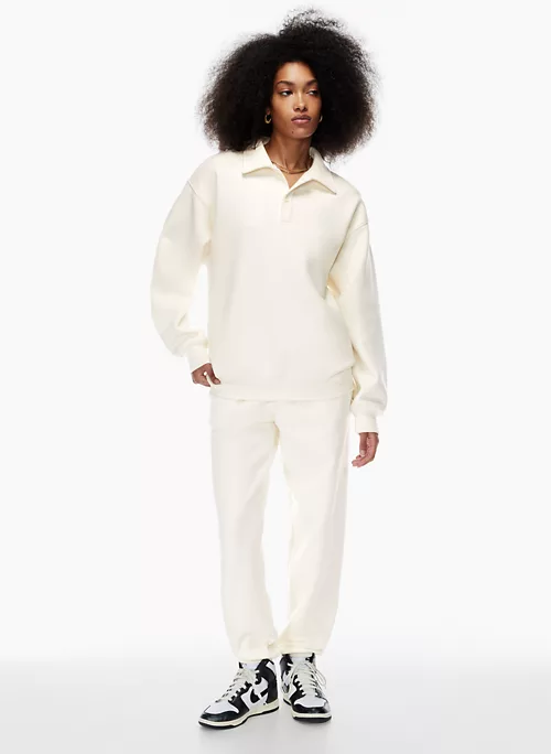 Or is it? This is a polo sweater with dropped shoulders. It’s made with Tna’s Cozy Fleece — premium, midweight fleece with a soft-brushed back, sueded face and cloud-nine cozy feel. It’s been recently redesigned for an even more flattering fit.