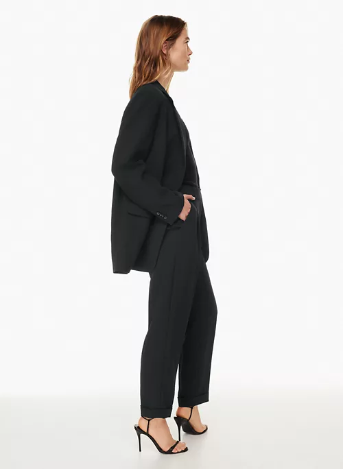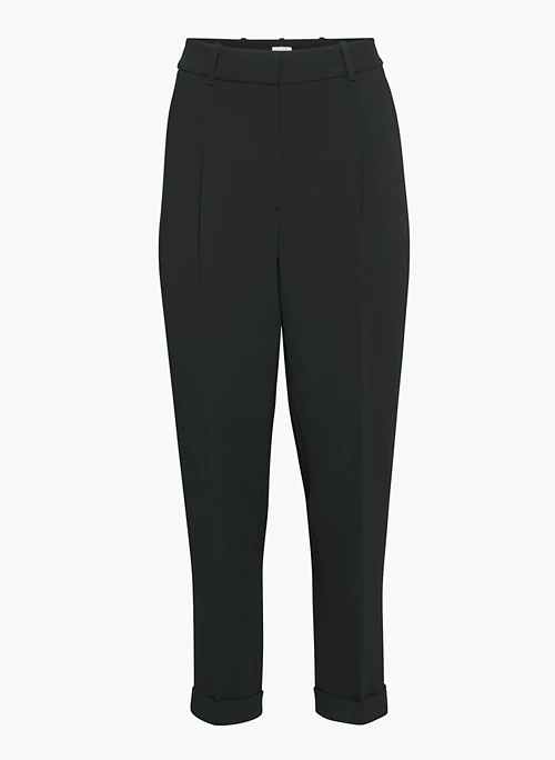 These are high-rise pants with a cuffed hem, front knife pleats and a relaxed fit. They’re made from Crepette™ — Wilfred’s iconic crepe fabric famous for its subtle texture and breezy, effortless drape. It’s sourced from an innovative Japanese mill.