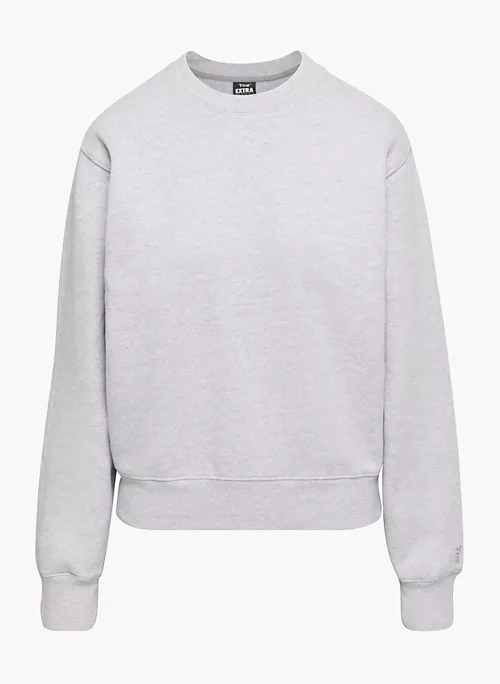 This is a crew-neck sweatshirt with dropped shoulders and ribbed trim. It’s made with Tna’s Extra Fleece — structured, heavyweight organic cotton with a soft-brushed back for added warmth. Your go big or go home fleece. Â