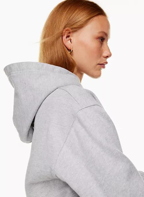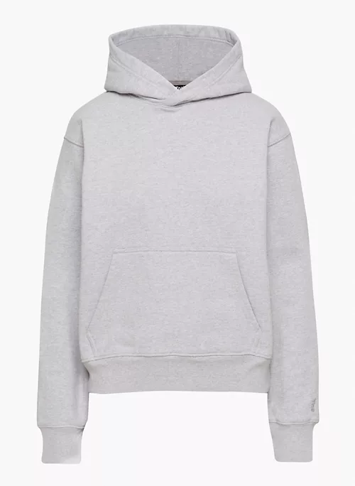 This is a pullover hoodie with a kanga pocket and dropped shoulders. It’s made with Tna’s Extra Fleece — structured, heavyweight organic cotton with a soft-brushed back for added warmth. Your go big or go home fleece.Â
