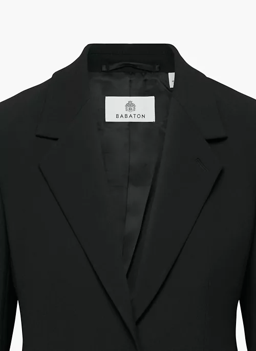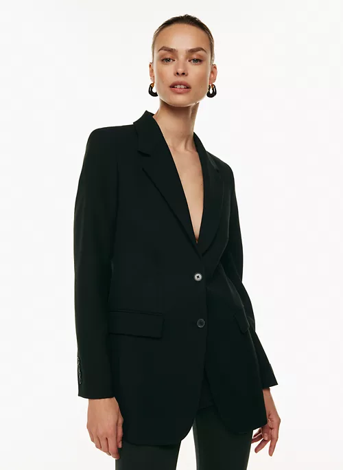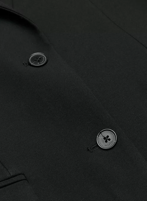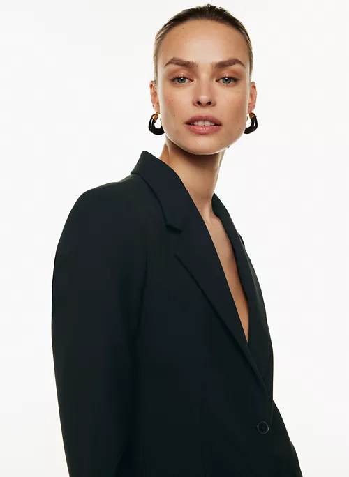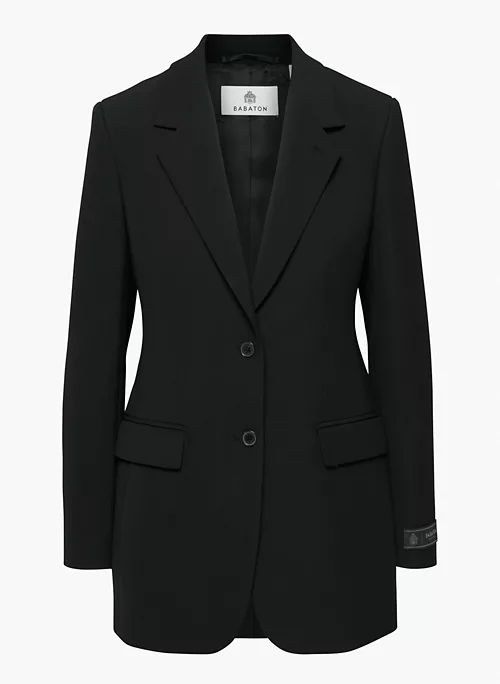 Business or otherwise. This is a single-breasted blazer with a notch lapel, welt hand pockets with flaps, shoulder pads and a darted waist for shaping. It’s made with (Re)ssential — softly structured stretch fabric that holds its form while you move easy. It’s sourced from a premier Portuguese mill and made with recycled materials and LENZINGâ„¢ ECOVEROâ„¢ Viscose — responsibly sourced, wood-based fibres produced through a process that reduces impact on forests, biodiversity and water supply.Â