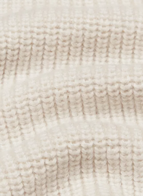 Or the real one. This is a mock-neck sweater with dropped shoulders and fully fashioned construction. It’s made with Embrace Merinoâ„¢ — extra-fine 100% merino wool yarn coveted for its natural warmth and super soft feel. We source ours from a premium Italian mill. This version is constructed using a Half Cardigan stitch with distinct vertical ribs for a three-dimensional look and feel.