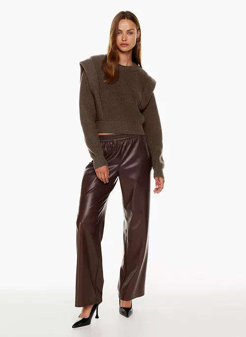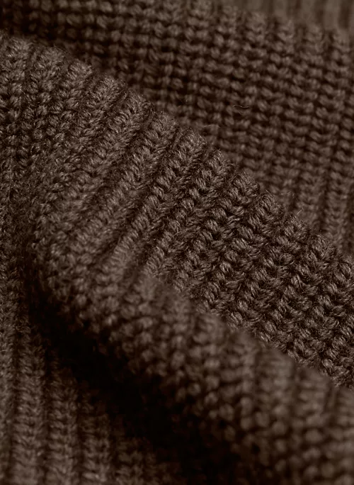 Ciao. This is a fully fashioned crew-neck sweater with shoulder pads. It’s knit with Embrace MerinoTM — extra-fine 100% merino wool yarn coveted for its natural warmth and super soft feel. We source ours from a premium Italian mill. It’s constructed using a Half Cardigan stitch with distinct vertical ribs for a three-dimensional look and feel.Â