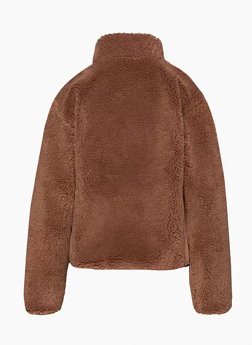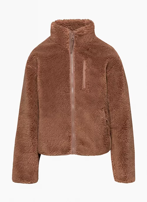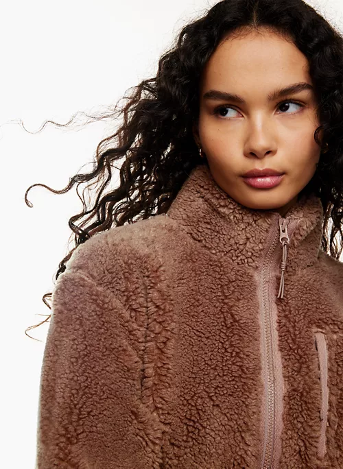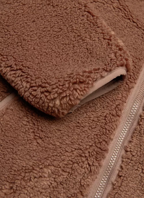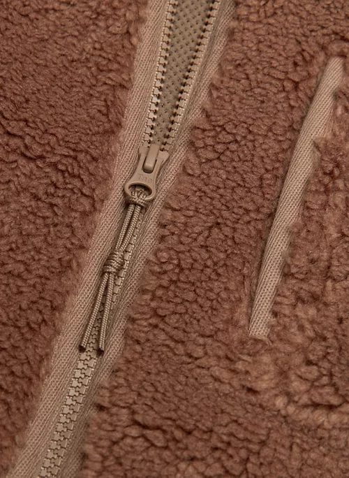This is a zip-up jacket with welt hand pockets. It’s made from Massive Polar — ultra shaggy sherpa fleece that’s extra cozy, warm, and made with recycled materials.