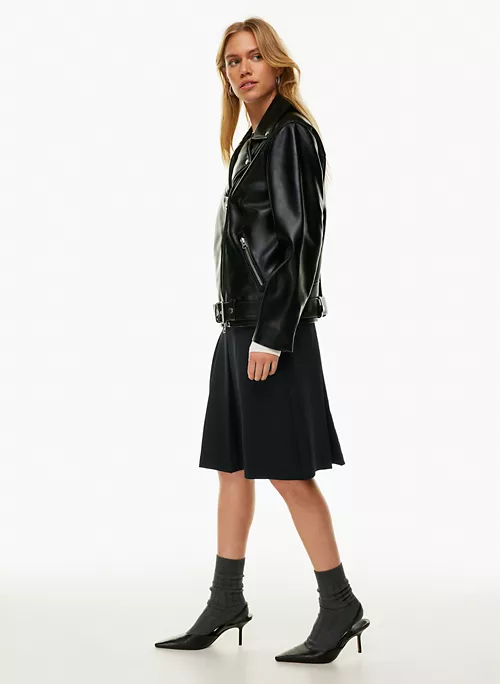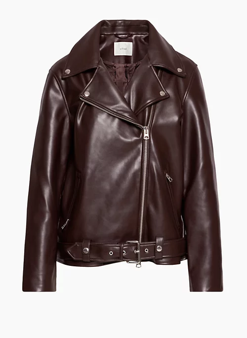 This is a lined moto jacket with sleeve vents, welt hand pockets and dropped shoulders. Itās made with a heavier-weight version of our innovative Vegan Leather that looks and feels like the real thing.