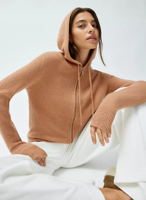 This is a zip-up hoodie with a drawcord and ribbed trim. Itβs made with our Luxe Cashmere β 100% Grade-A cashmere coveted for its unparalleled softness and warmth. The finest available.