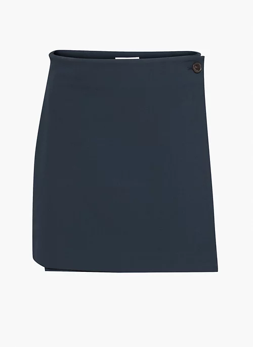 This is a lined, mini wrap skirt with a high rise and a darted back. It’s tailored with (Re)ssential — softly structured stretch fabric that holds its form while you move easy. It’s sourced from a premier Portuguese mill and made with recycled materials and LENZINGâ„¢ ECOVEROâ„¢ Viscose — responsibly sourced, wood-based fibres produced through a process that reduces impact on forests, biodiversity and water supply.Â