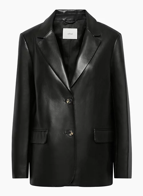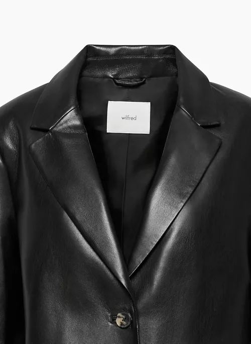 This is a relaxed-fit, single-breasted blazer with a notched lapel, welt hand pockets and topstitch detailing throughout. It’s made with our innovative Vegan Leather that looks and feels like the real thing.Â