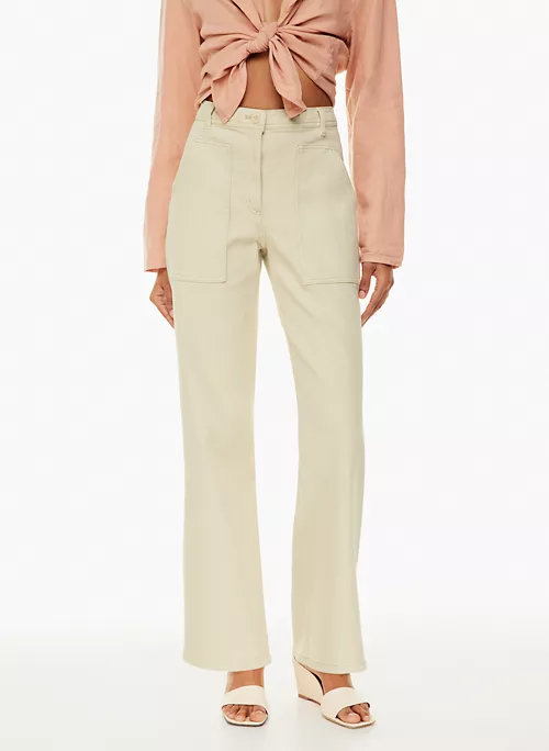 These are mid-rise utility pants with patch pockets, a straight waistband and darts at the back for shaping. They’re made with comfortable stretch twill. This version was recently redesigned for an improved fit with sleeker, more meticulous construction.