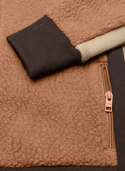 This is a hooded zip-up with pockets and ribbed finishing. It’s made with Bigfoot Polar — lightweight, 100% recycled fleece made with Polartec© Thermal Pro® that’s breathable and warm with a shaggy sherpa texture.