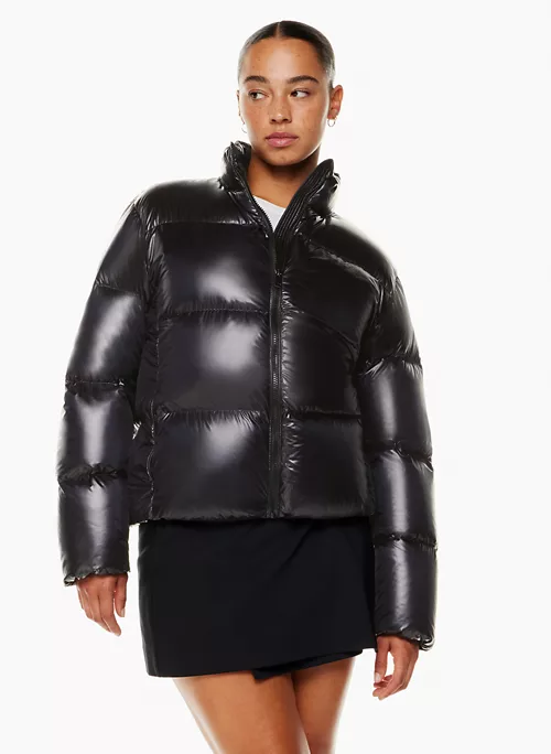 Engineered to deliver warmth to -20°C / -4°F, this is a relaxed-fit, ultra-lofty quilted puffer with a high neck designed to keep cold weather out. It’s filled with 100% responsibly sourced, 700+ fill-power goose down that provides warm, lightweight insulation. It’s made with Hi-Gloss — water-repellent, wind-resistant taffeta with a glossy finish and a soft feel.