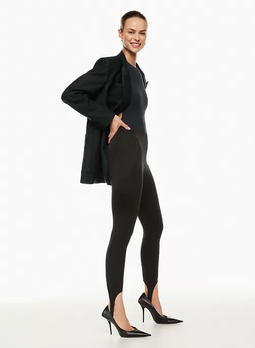 These are high-waisted stirrup leggings with zip pockets. They’re made with high-stretch ponte fabric from Italy, designed to hold you in.Â