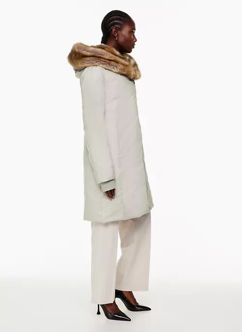 Perfected season after season by our Climate Lab team, this is a sleek, mid-length parka with merino wool cuffs and a hood lined with Real Faux Fur  — a luxe vegan fur with an authentic look and feel. This version is made with Arctic Twill — waterproof and windproof twill fabric with a soft sueded face and a peachy feel.