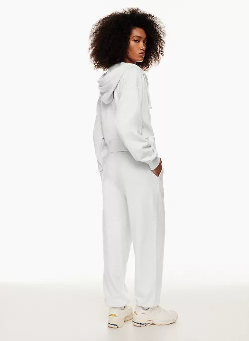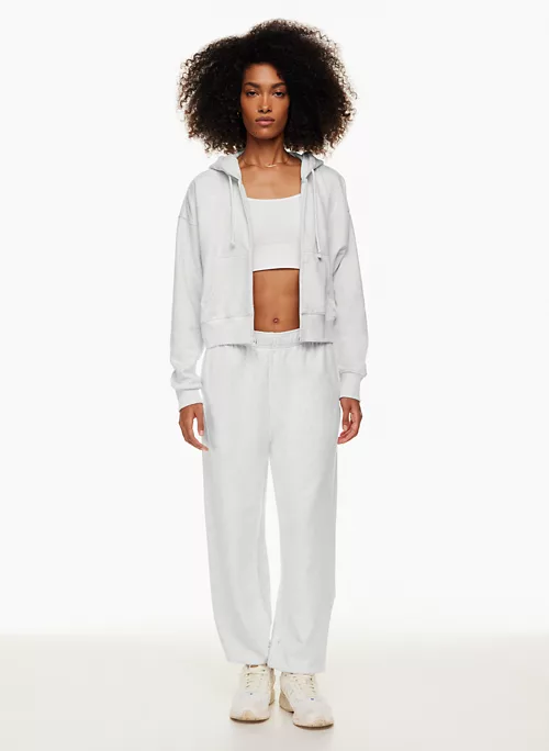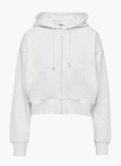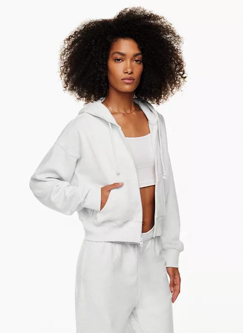 This is a boxy zip-up hoodie with a kanga pocket and double-layer hood. It’s made with Tna’s Terry Fleece — all-season, midweight French terry with a looped back, soft drape and a breezy feel. Très luxe.Â