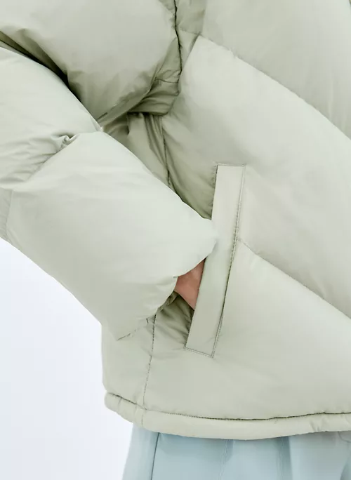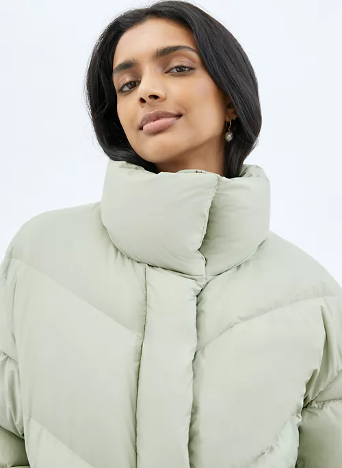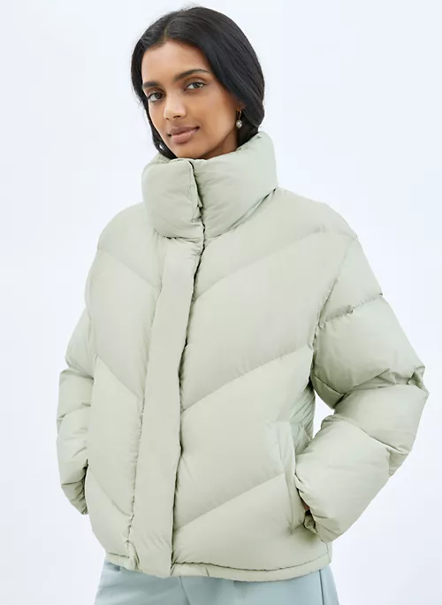 Engineered to deliver warmth to -20°C / -4°F, this cloud-soft puffer has a boxy fit with a tall funnel neck and chevron quilting. It’s filled with 100% responsibly sourced, 700+ fill-power goose down that provides ultra-warm, lightweight insulation. It’s constructed with Nylo Tech — technical, water-repellent fabric. This version is made with recycled nylon and has a soft feel.