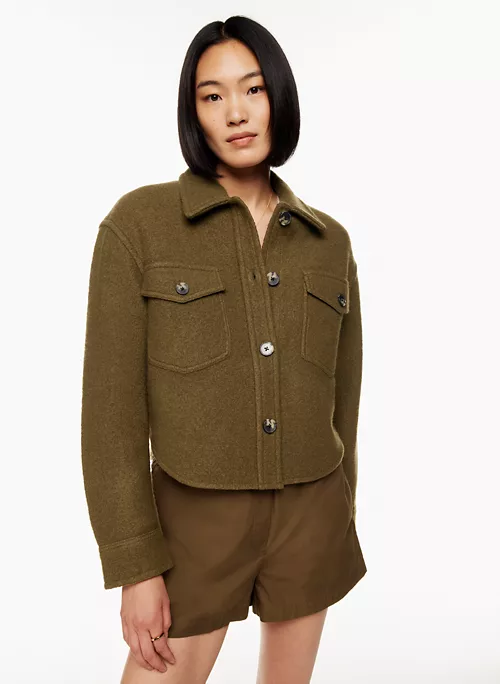 The cropped version of a Wilfred Free favourite, this version of The Ganna™ has a relaxed fit, dropped shoulders, patch pockets and a rounded hem. It’s made from boiled merino wool that’s plush, dense and textural.