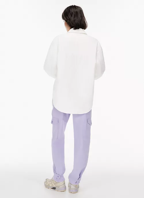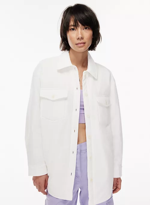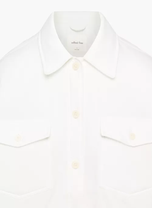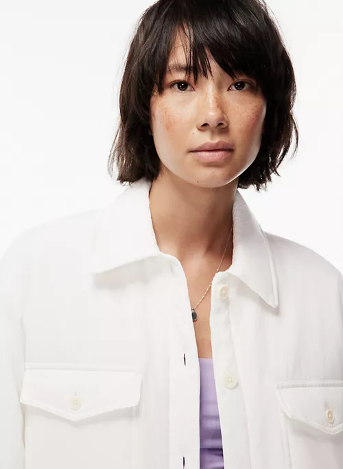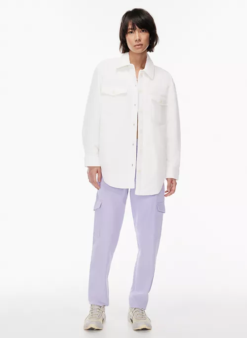 This is a workwear-inspired utility jacket with patch pockets, inseam pockets, dropped shoulders and a rounded hem. It’s made with cliMATTE — water-repellent Japanese ripstop fabric with a matte finish and a soft feel. This version is wind resistant.