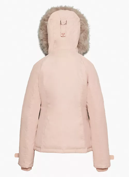 - Content: 57% biconstituent fibre polyester nylon, 43% polyester; Coating: polyurethane; Faux fur lining: 100% polyester; Sleeve & lower body lining: 100% polyester; Cuffs: 80% merino wool, 20% nylon; Fill: 80% goose down, 20% goose feathers; Detachable faux fur trim: 47% modacrylic, 37% acrylic, 16% polyester