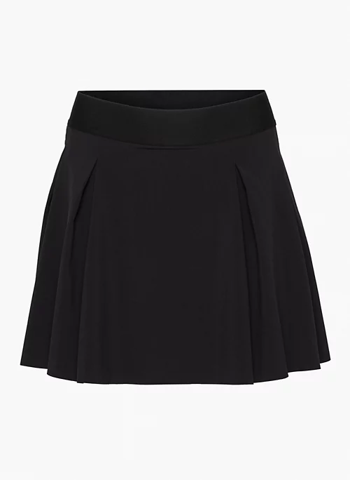 This is a high-rise pleated tennis skirt with built-in undershorts and functional ball pockets. The outer layer is made with TnaMOVE™ — a sweat-wicking fabric with a cool feel that’s made with recycled materials. The undershorts are made with TnaSLICK™ — a sculpting, breathable fabric that’s sweat-wicking for a smooth, cool feel.
