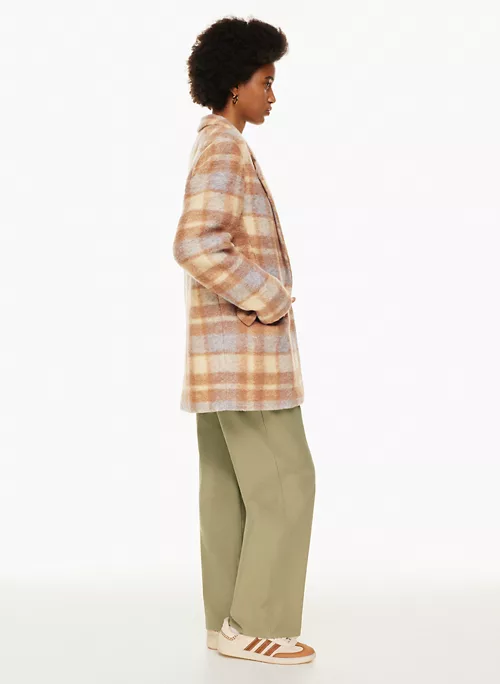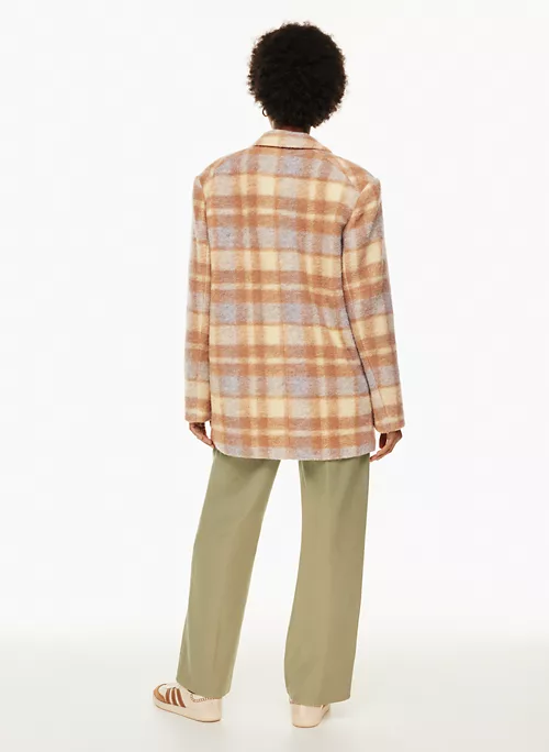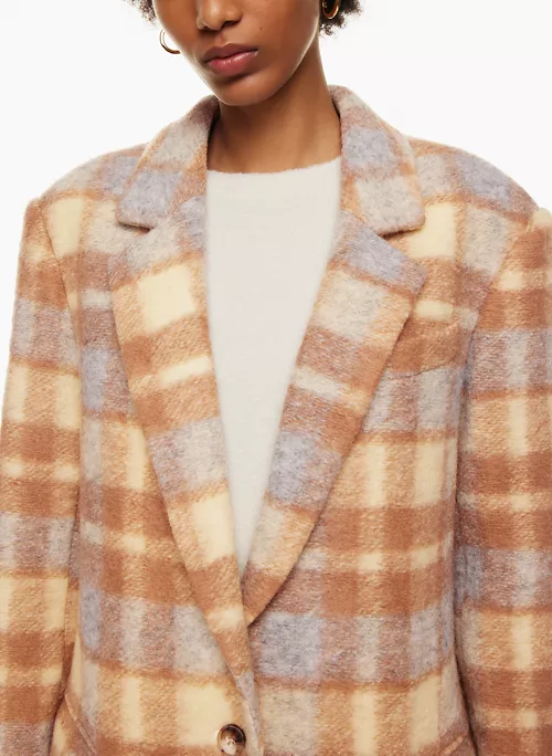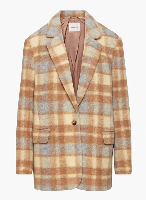 You. This is a relaxed single-breasted blazer with with a notch collar and welt hand pockets. It’s made with soft and luxurious felted wool from Italy. It features a yarn-dyed stripe pattern that’s woven in, as opposed to printed on, for a more dimensional look.Â