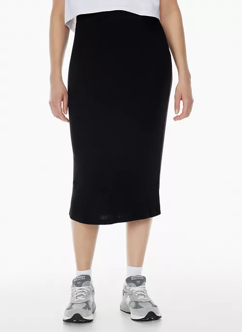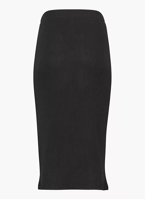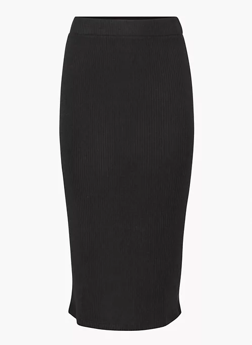 This is a high-rise, ribbed pencil skirt with an elastic waist. This fabric is made with TENCEL™ Modal — biodegradable fibres sourced mainly from natural beech wood and produced through an environmentally low-impact process.