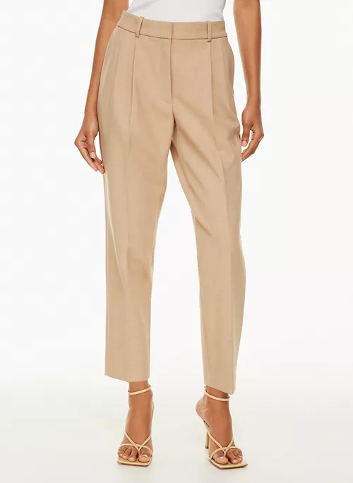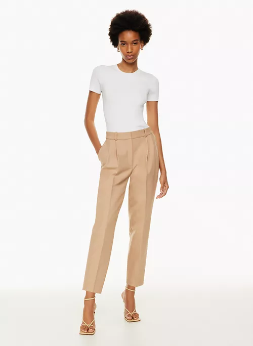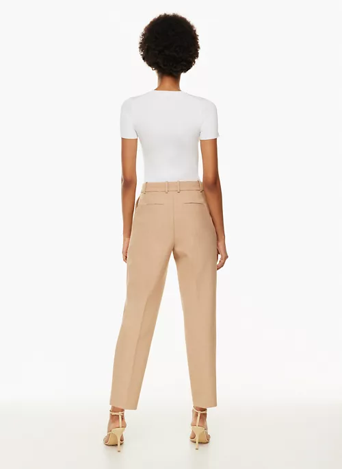 These are relaxed mid-rise pants with front pleats and a darted back waist. They’re made with (Re)ssential — softly structured stretch fabric that holds its form while you move easy. It’s sourced from a premier Portuguese mill and made with recycled materials and LENZINGâ„¢ ECOVEROâ„¢ Viscose — responsibly sourced, wood-based fibres produced through a process that reduces impact on forests, biodiversity and water supply.