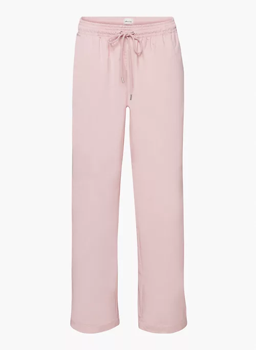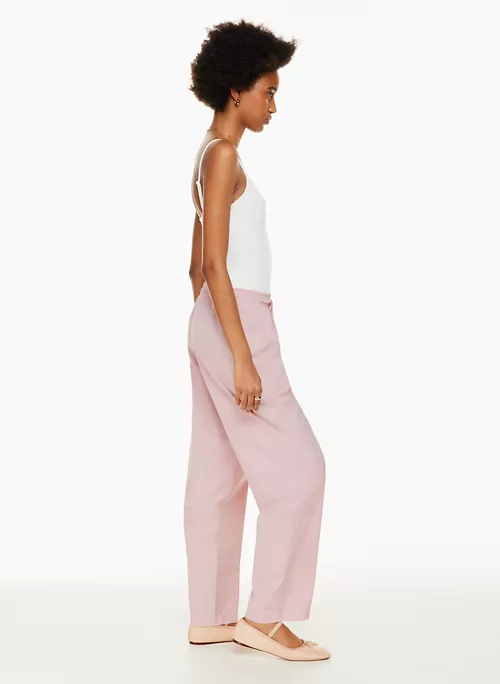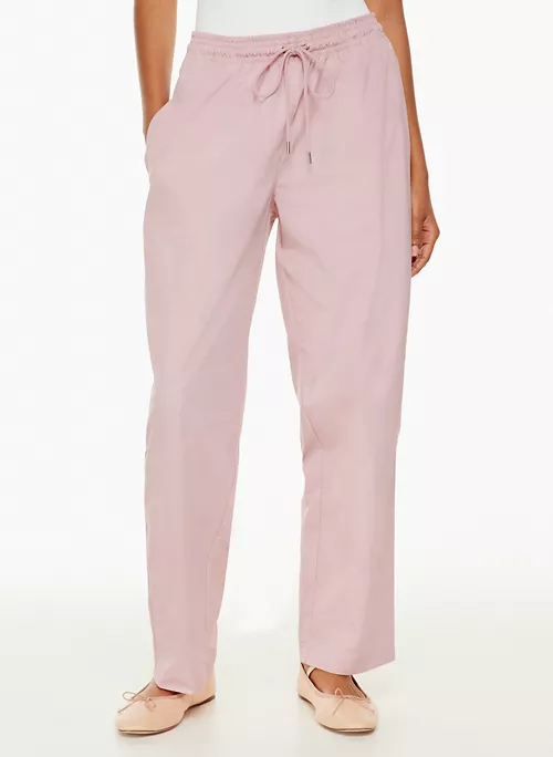 These are high-rise joggers with an elastic drawcord waist. They’re made from smooth, crisp taffeta with a soft sheen. This fabric is sourced from Japan.